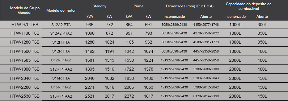 A tecnologia Japonesa da Mitsubishi proporciona grande resistência aos grupos de geradores de maiores potências, motorizando a gama com intervalo de potência de 970 KVA a 2530 KVA.